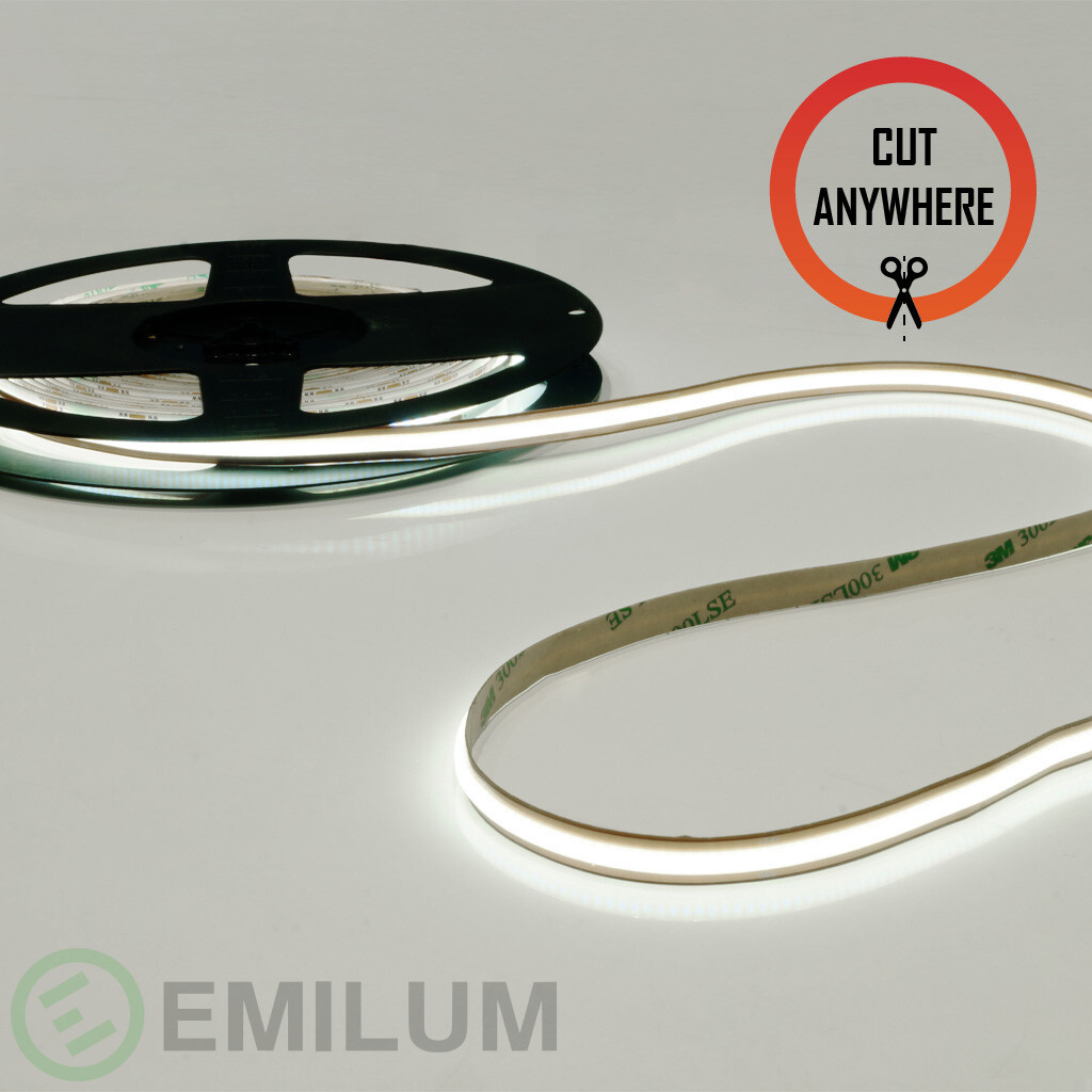 A Cut Anywhere COB LED-szalag a COB technológiájának (Chip-On-Board) köszönhetően kiemelkedik a hagyományos LED szalagok közül. Ez a technológia egyenletes, homogén megvilágítást tesz lehetővé, látható fényforráspontok nélkül. A szalag a méterenkénti 528 LED sűrűségével és mindössze 8 mm-es szélességével sokoldalúan alkalmazható.